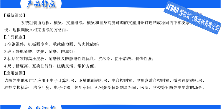 全鋼防靜電地板 【規格型號】 600×600×35mm 【產品概述】 全鋼防靜電活動地板采用上海寶鋼集團優質合金冷軋鋼板,經拉伸后點焊成形。外表經磷...